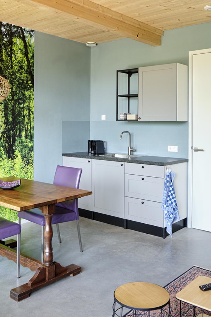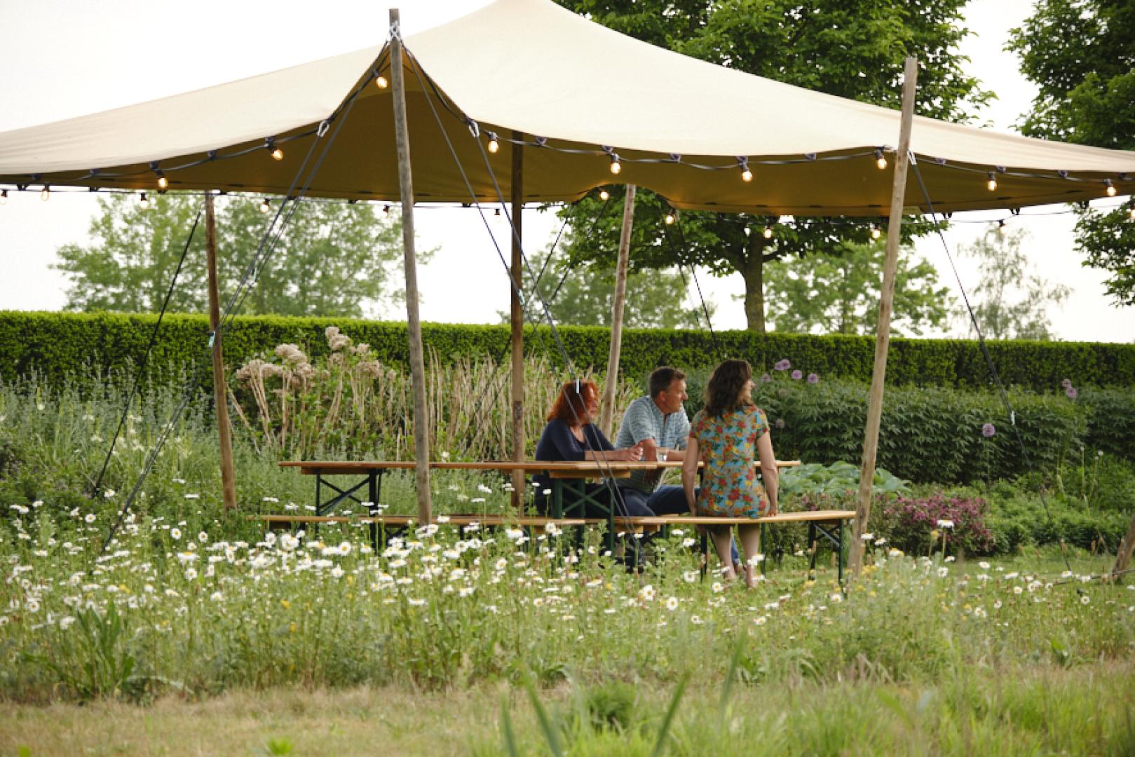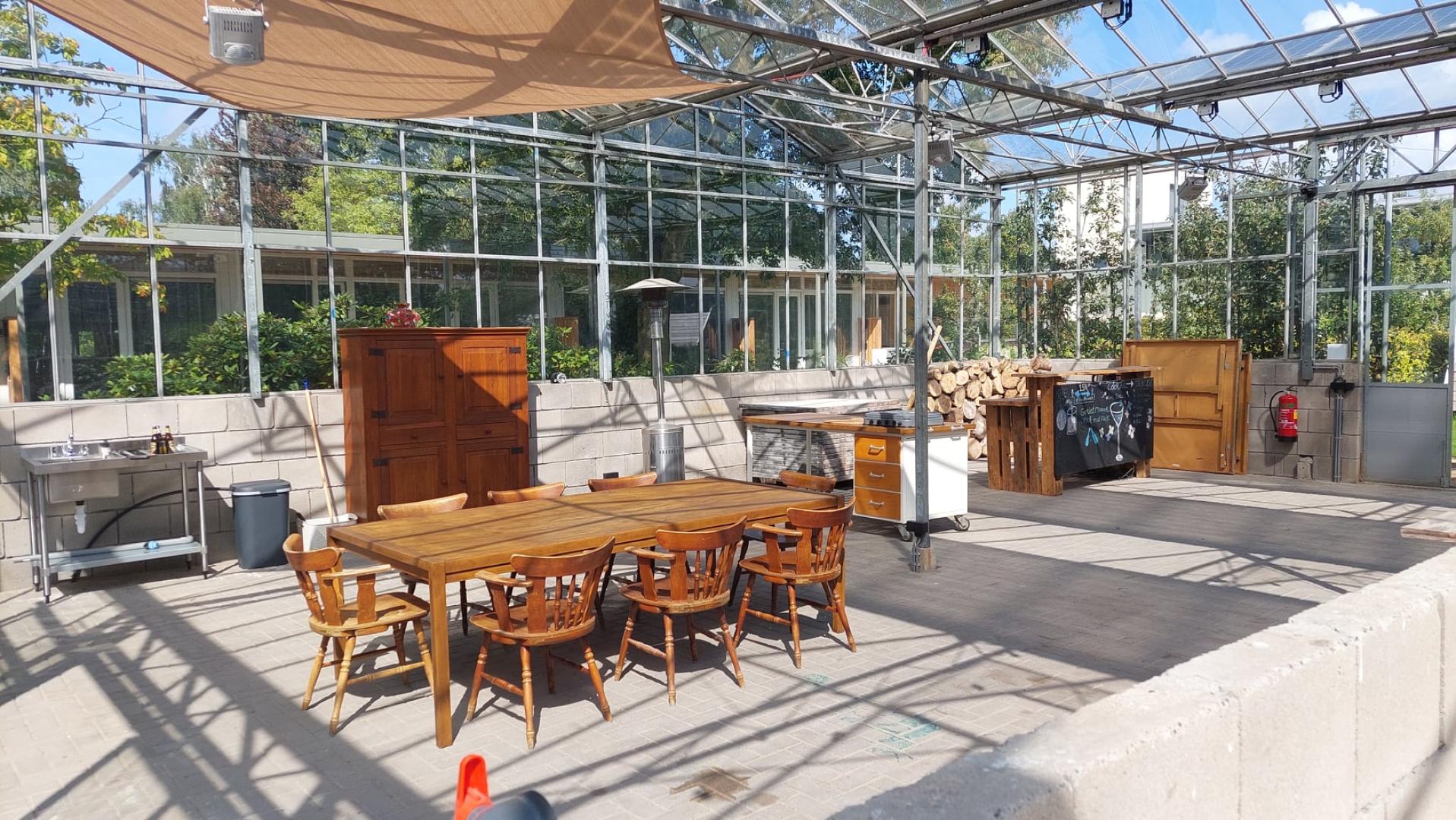 De gasten kunnen gebruikmaken van de mooie kas, waar je kunt lezen, spelletjes spelen, tafeltennissen of gezellig aan de bar kunt zitten. Koken? Geen probleem! We hebben een complete mobiele keuken met alles wat je nodig hebt – bij mooi weer rijd je hem naar buiten.
